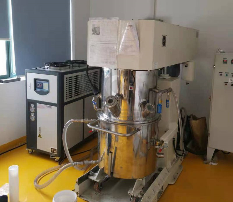 雙行星攪拌機雙行星混合機的攪拌槳葉,在公轉的同時也自轉,使罐體內物料上下及四周循環運動,從而可在很短時間內達到混合(混煉)效果。罐體內壁為大型立車精加工,再經大型拋光機自動 -
